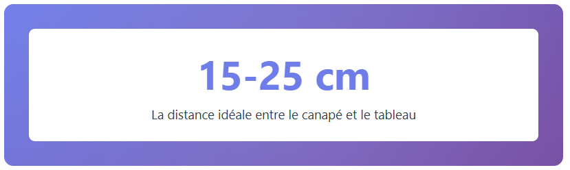 La règle universelle conseille de positionner votre tableau entre 15 et 25 cm au-dessus de votre canapé. Cette distance crée une connexion visuelle entre le mobilier et la décoration murale sans créer de vide disgracieux. L’œil doit naturellement passer du dossier du canapé à l’affiche dans un mouvement fluide et agréable !
