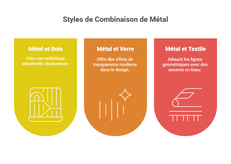 L’objectif de cette approche décorative ? Apporter une touche moderne et sophistiquée à vos espaces de vie tout en conservant une atmosphère chaleureuse. Le métal offre cette capacité unique à se fondre harmonieusement avec différents styles, du loft industriel au design scandinave. L’avantage principal réside dans sa polyvalence exceptionnelle et sa durabilité remarquable.