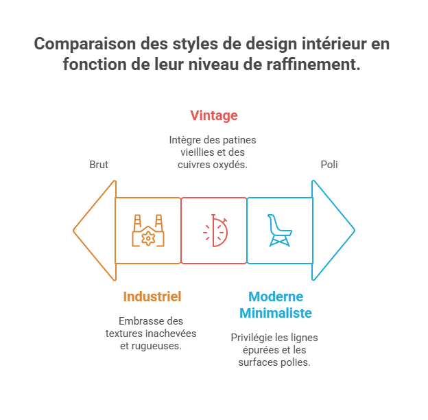 - Style vintage : intégrant des patines vieillies, des cuivres oxydés et des motifs rétro