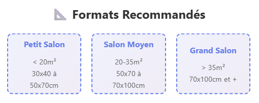 - Salon moyen (20-35m²) : formats 50×70 cm à 70×100 cm