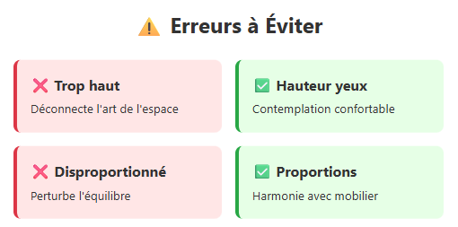 Placer un tableau trop haut constitue l’erreur la plus fréquente en décoration d’intérieur. Cette maladresse crée une sensation de déconnexion entre l’art et l’espace de vie. De même, choisir des dimensions disproportionnées par rapport au mobilier environnant perturbe l’équilibre visuel général de la pièce. La cohérence reste la clé d’une décoration réussie et harmonieuse.